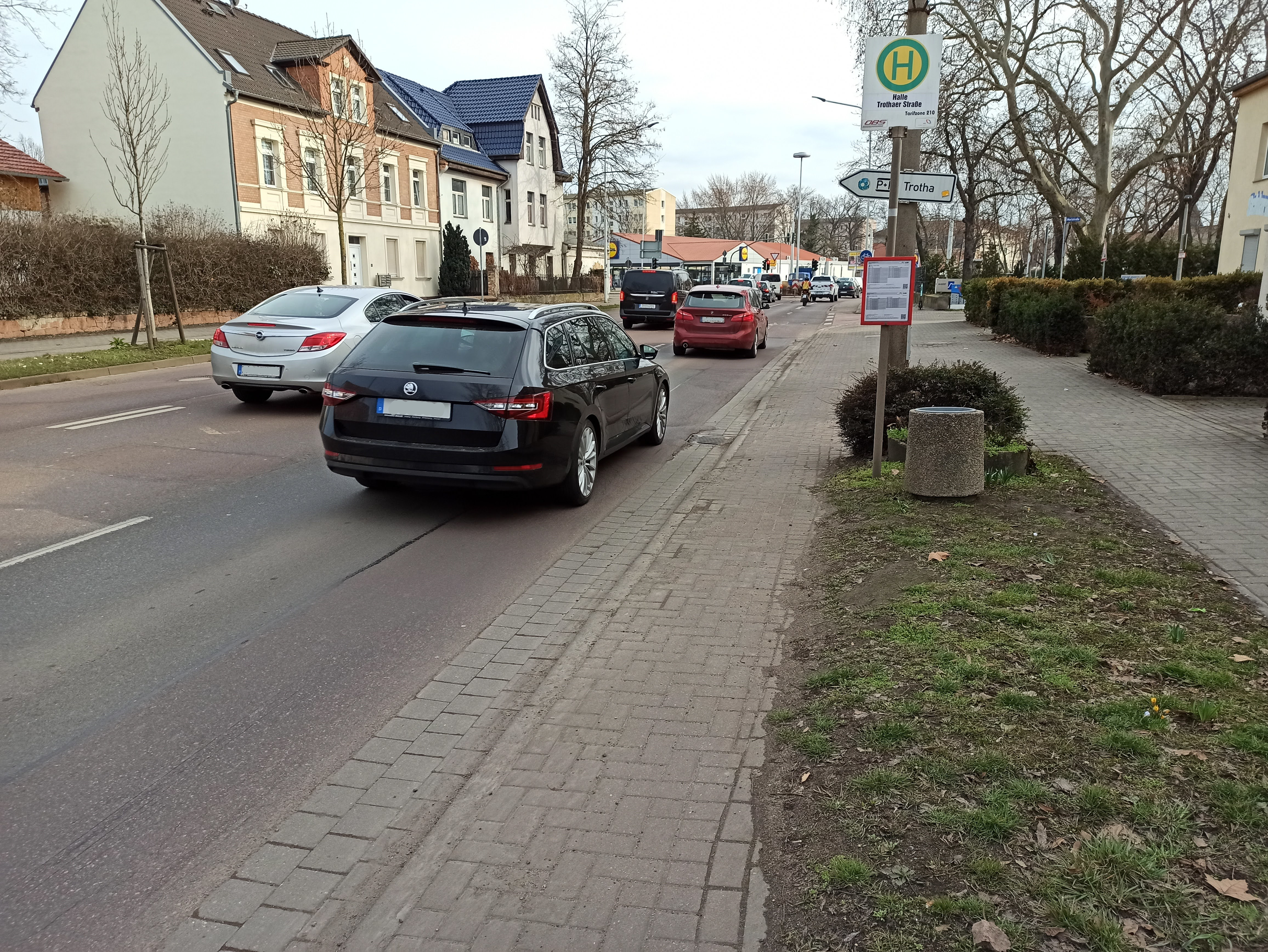 Im Jahr 2018 wurde der Stadt in einem Urteil zur Magdeburger Straße vom Verwaltungsgericht Halle attestiert, dass die Radwege „nicht dem Stand der Technik“ entsprechen. In der Konsequenz musste sie die Radwegebenutzungspflicht aufheben und Zehntausende Euro für eine Neuprogrammierung der Ampellaufzeiten aufwenden. Radfahrende haben auf vielen Strecken demnach das Recht, die Fahrbahn zu nutzen – werden dort aber von Kfz-Fahrenden bedrängt und genötigt. Eine Ausweisung der Fahrbahnmischnutzung mittels Fahrradpiktogrammen wäre hier wie andernorts eine sehr günstige Interimslösung und wirksame Verdeutlichung des Status Quo.